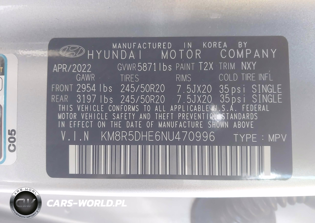 IAAI Nr: I-44478358 VIN: KM8R5DHE6NU470996 Port: Elizabeth, NJ