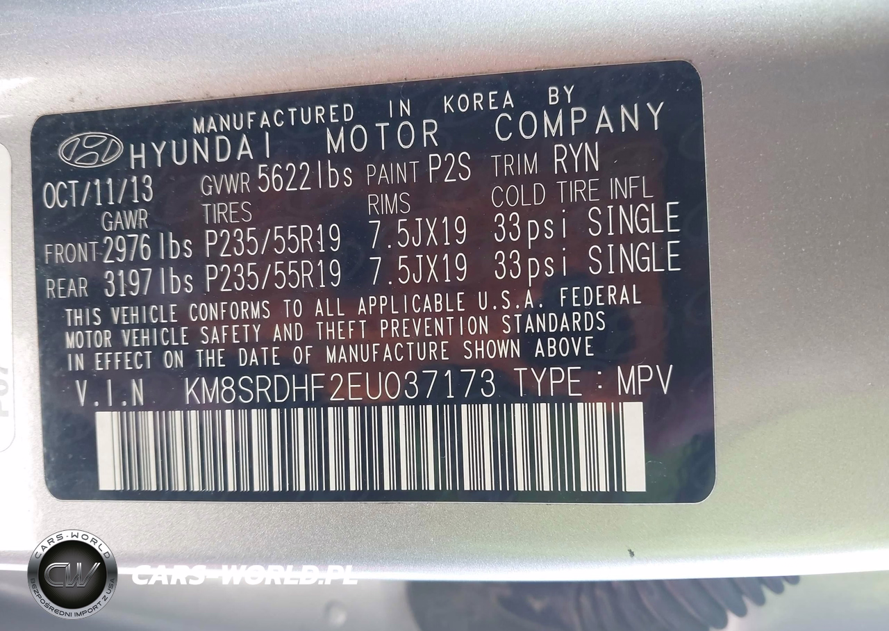IAAI Nr: I-44478871 VIN: KM8SRDHF2EU037173 Port: Houston, TX