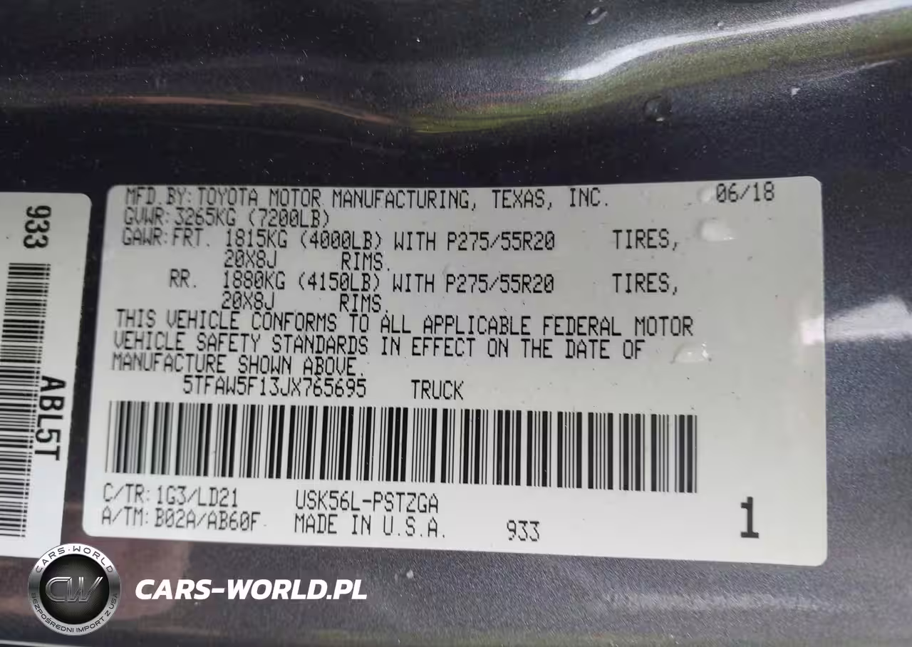 IAAI Nr: I-44479018 VIN: 5TFAW5F13JX765695 Port: Savannah, GA