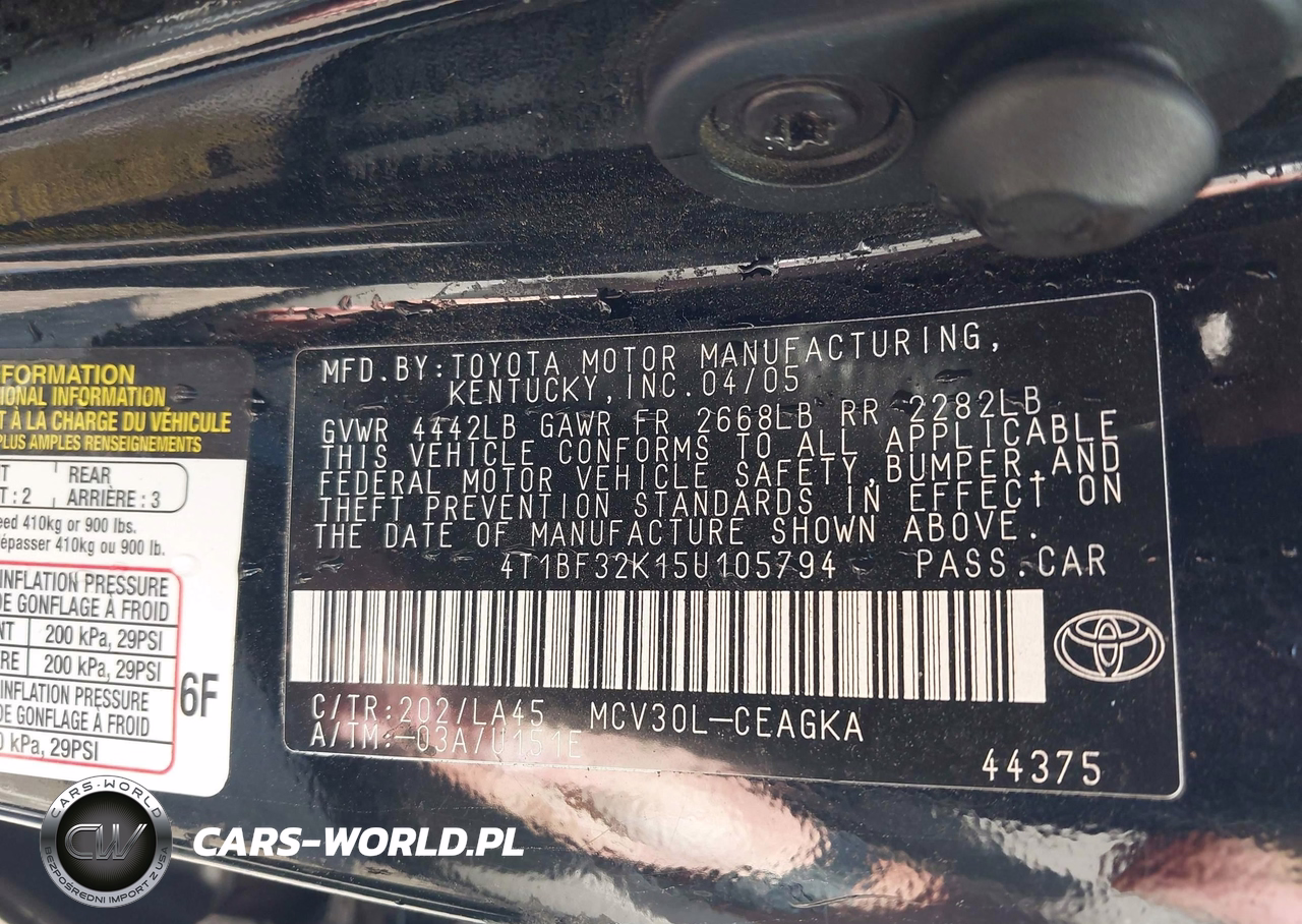 IAAI Nr: I-44479706 VIN: 4T1BF32K15U105794 Port: Houston, TX