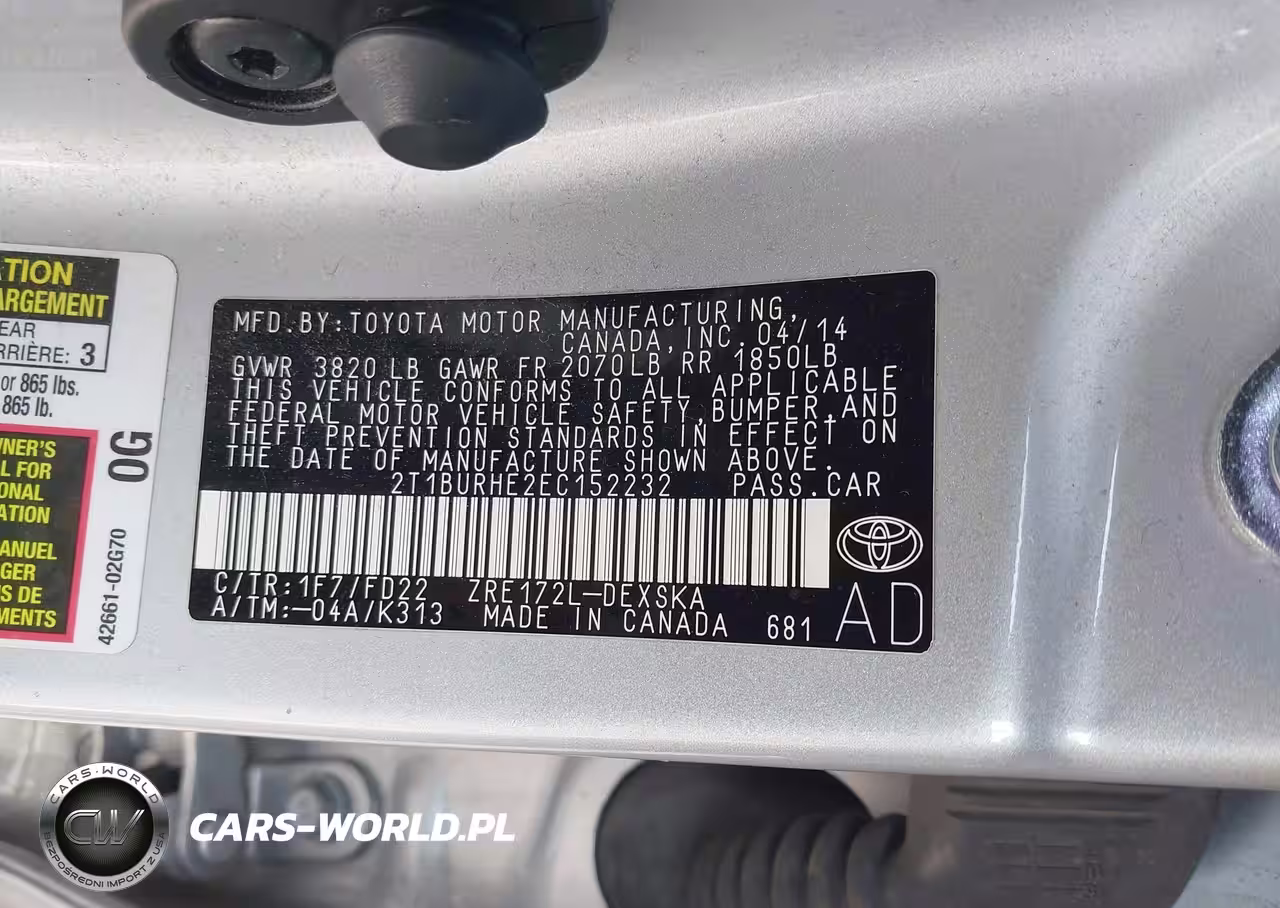 IAAI Nr: I-44479803 VIN: 2T1BURHE2EC152232 Port: Elizabeth, NJ