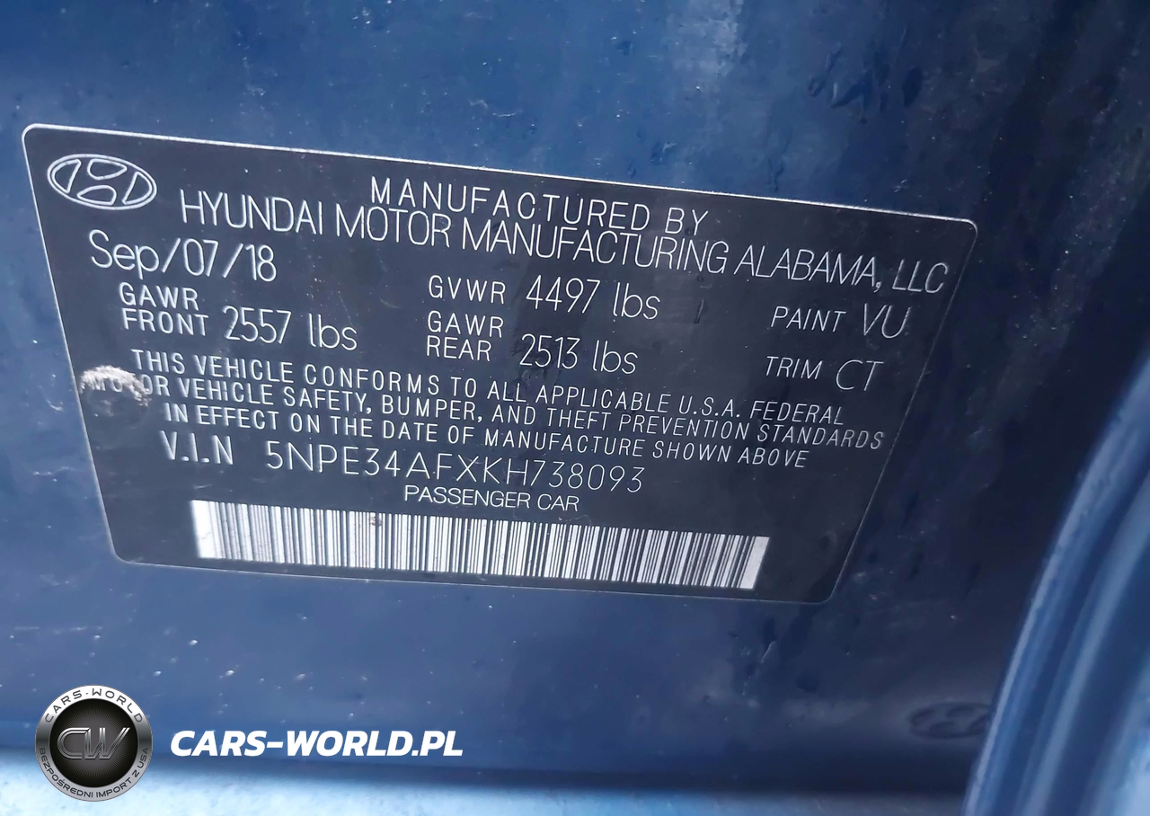 IAAI Nr: I-44481785 VIN: 5NPE34AFXKH738093 Port: Savannah, GA