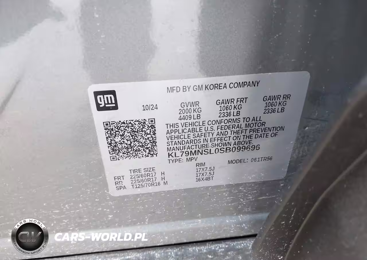 IAAI Nr: I-44481983 VIN: KL79MNSL0SB099696 Port: Indianapolis, IN