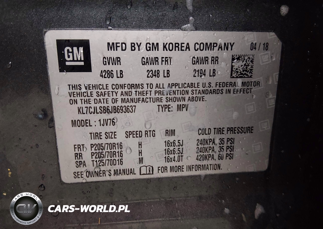IAAI Nr: I-44482241 VIN: KL7CJLSB6JB693637 Port: Houston, TX