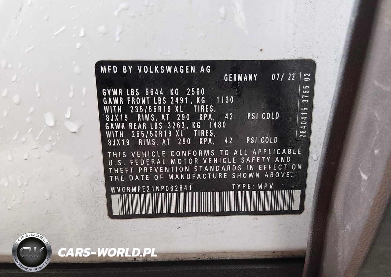 IAAI Nr: I-44482411 VIN: WVGRMPE21NP062841 Port: Houston, TX