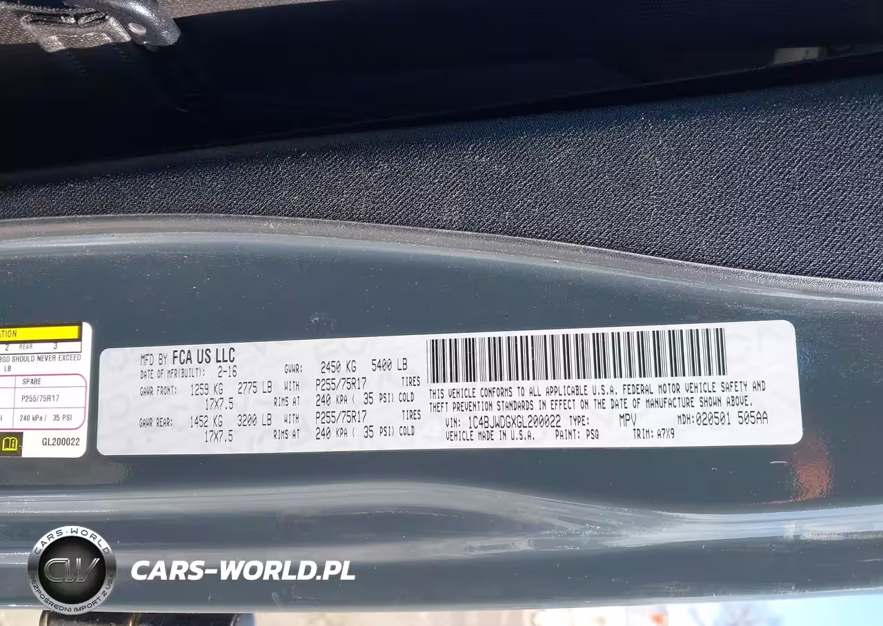 IAAI Nr: I-44482856 VIN: 1C4BJWDGXGL200022 Port: Elizabeth, NJ