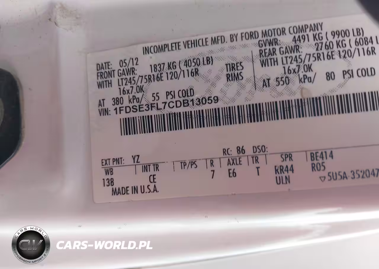 IAAI Nr: I-44483947 VIN: 1FDSE3FL7CDB13059 Port: Indianapolis, IN