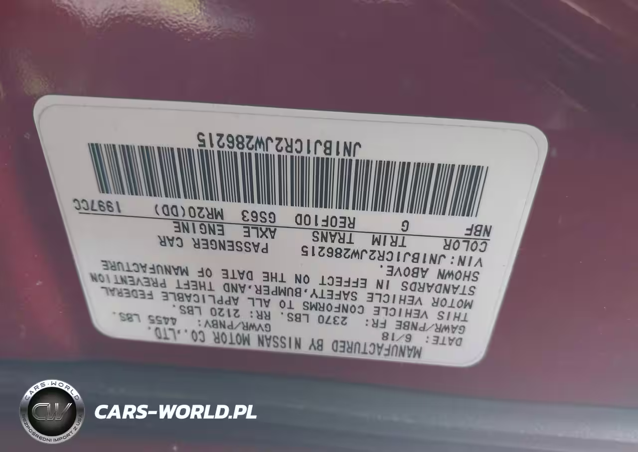 IAAI Nr: I-44485028 VIN: JN1BJ1CR2JW286215 Port: Elizabeth, NJ