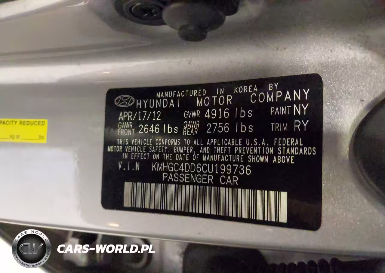 IAAI Nr: I-44485568 VIN: KMHGC4DD6CU199736 Port: Los Angeles, CA