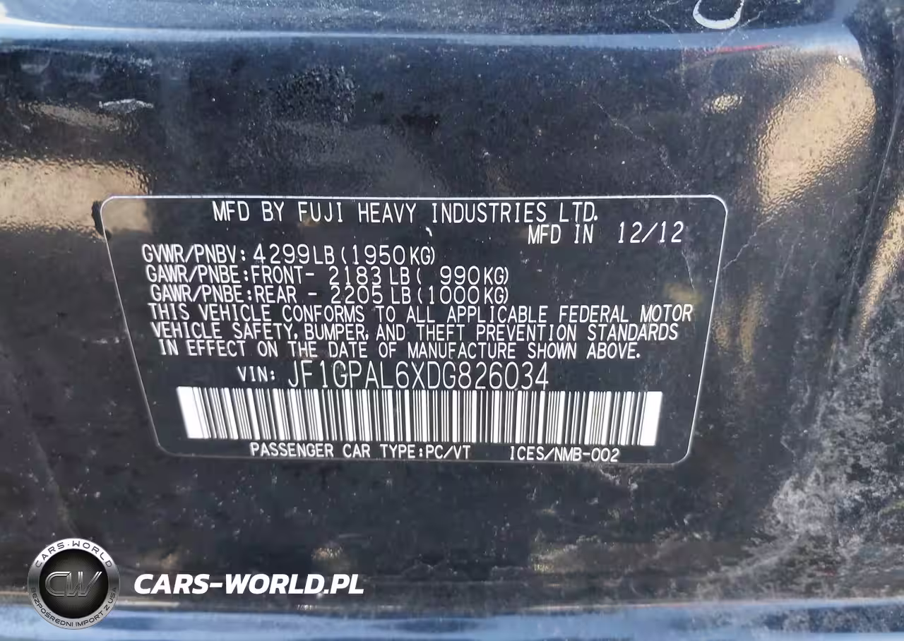 IAAI Nr: I-44485878 VIN: JF1GPAL6XDG826034 Port: Indianapolis, IN