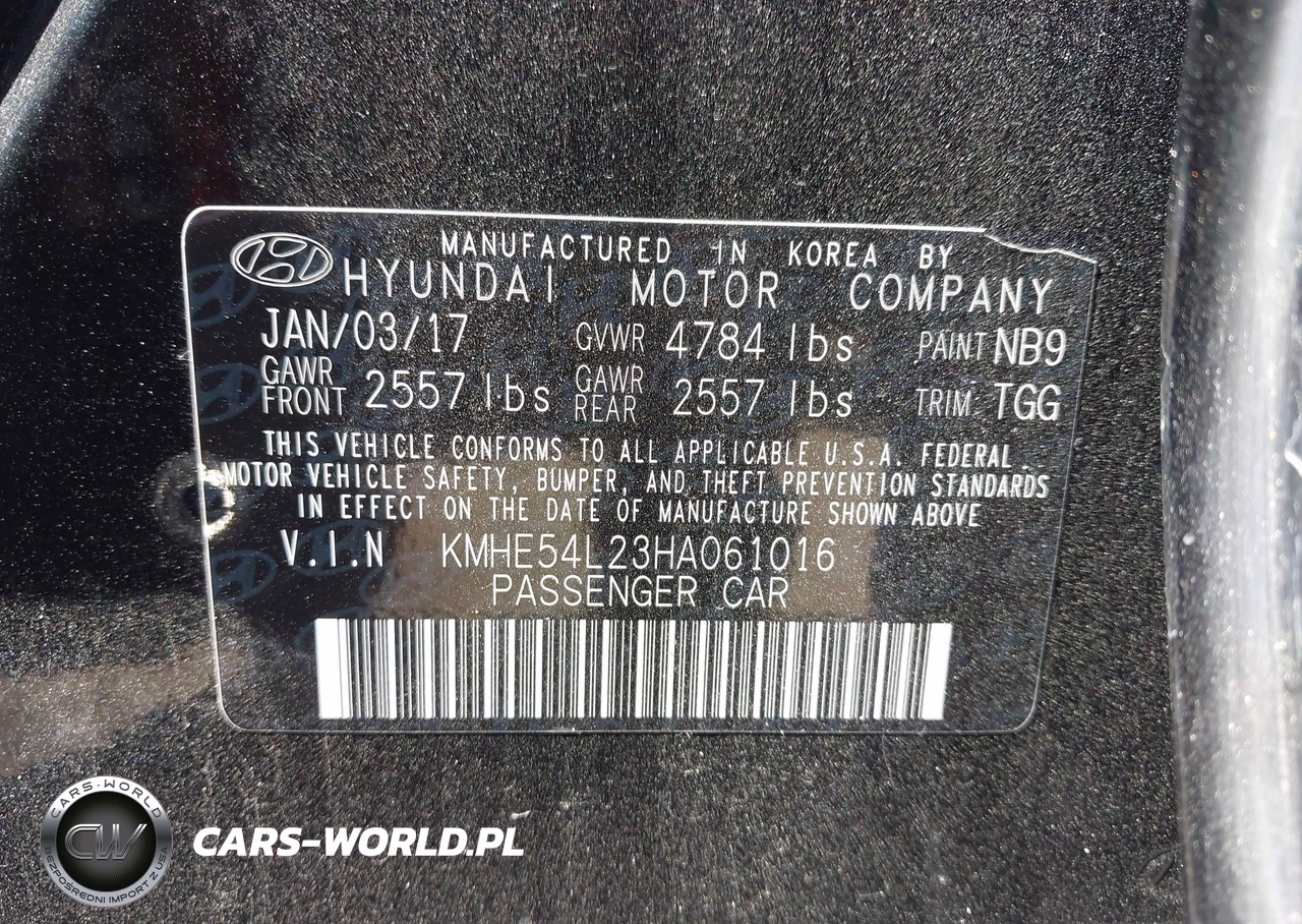 IAAI Nr: I-44486086 VIN: KMHE54L23HA061016 Port: Los Angeles, CA