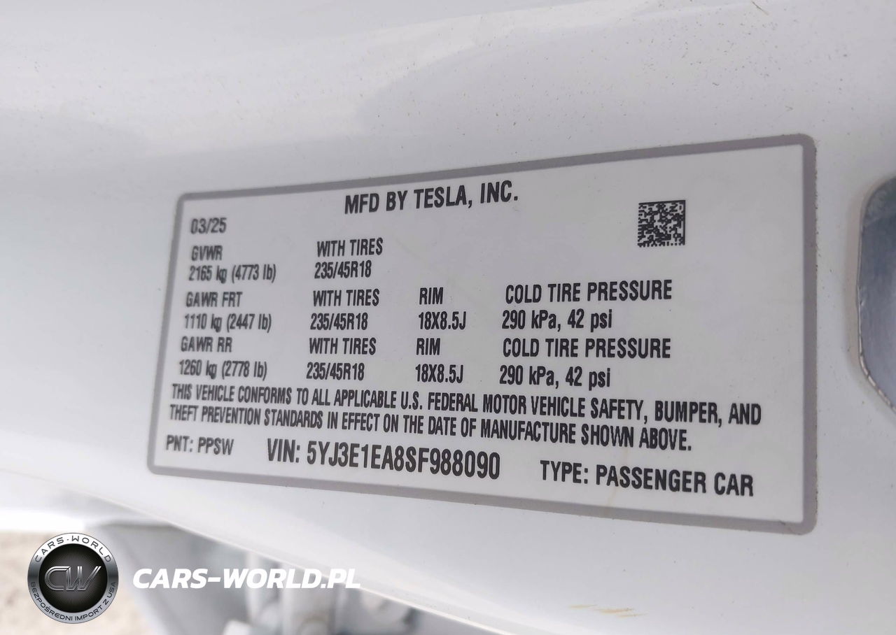 IAAI Nr: I-44486514 VIN: 5YJ3E1EA8SF988090 Port: Savannah, GA