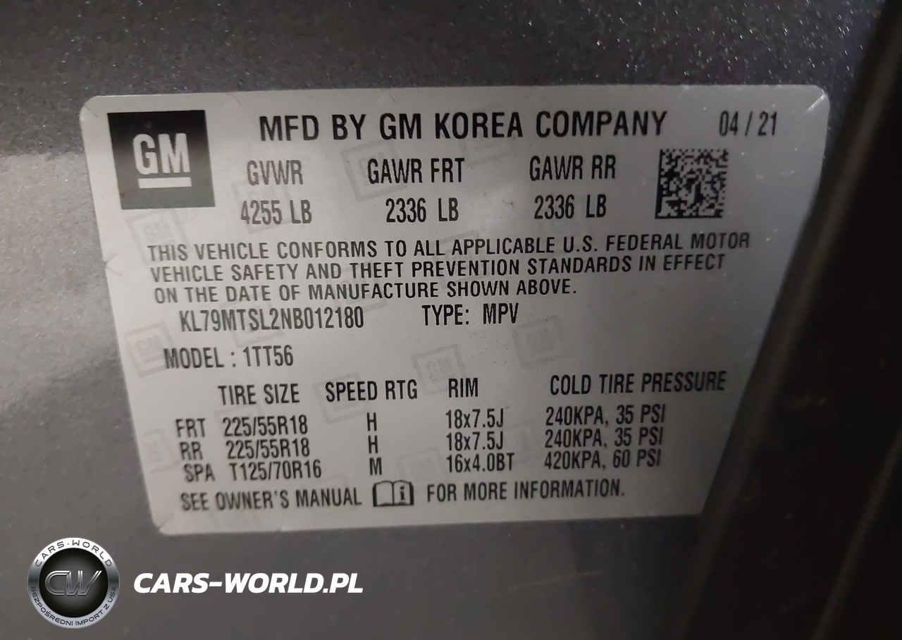 IAAI Nr: I-44486690 VIN: KL79MTSL2NB012180 Port: Savannah, GA