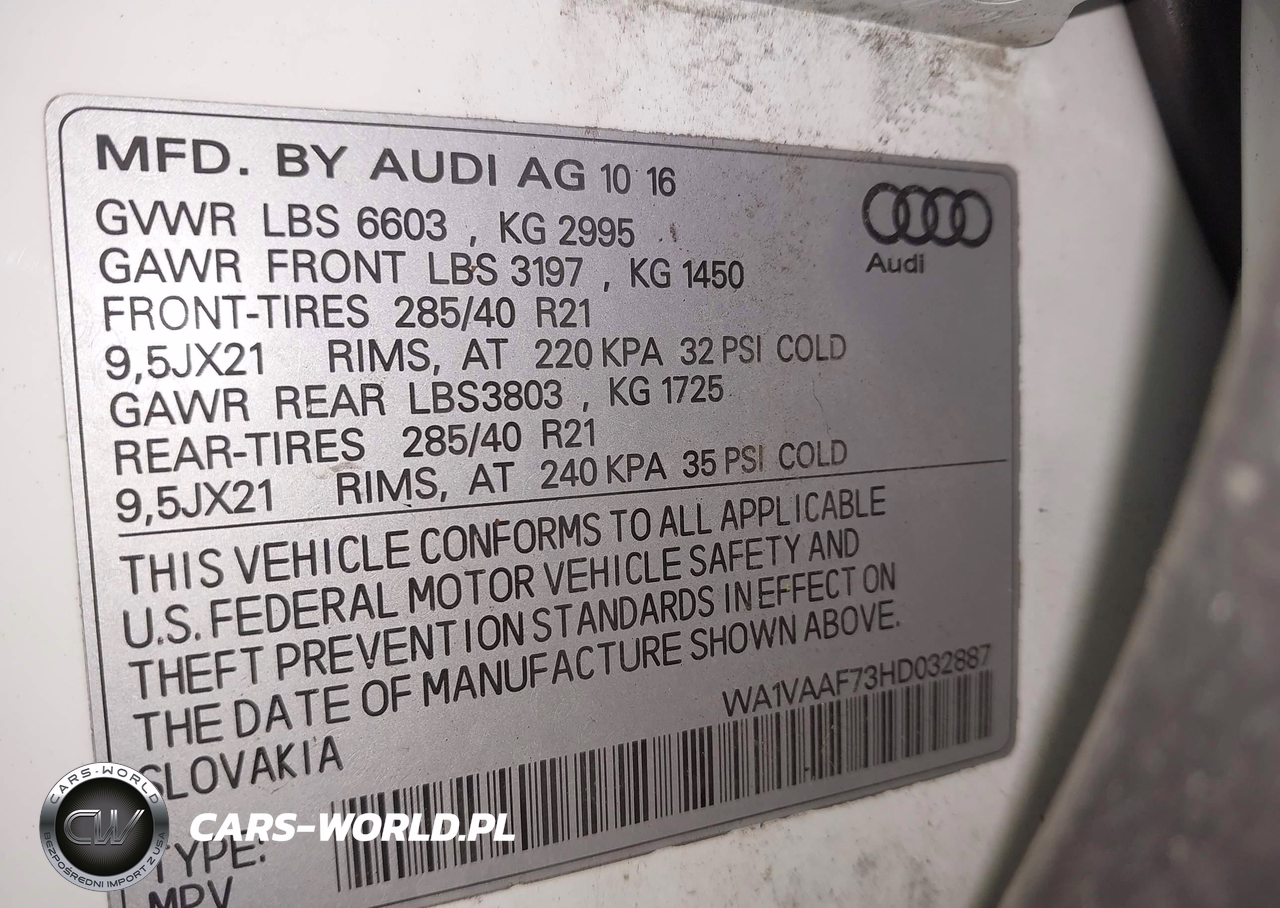 IAAI Nr: I-44487116 VIN: WA1VAAF73HD032887 Port: Elizabeth, NJ
