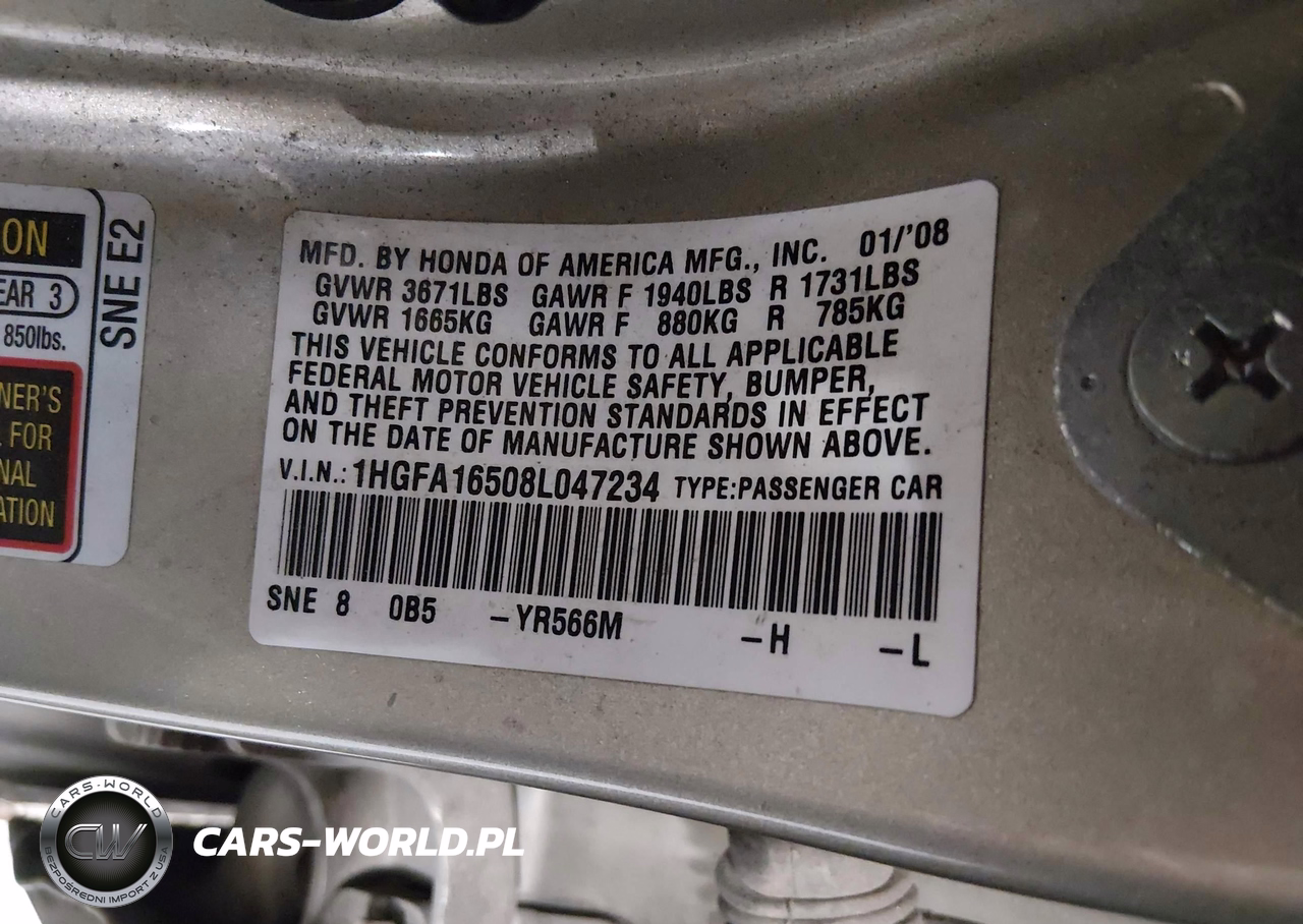 IAAI Nr: I-44488249 VIN: 1HGFA16508L047234 Port: Houston, TX
