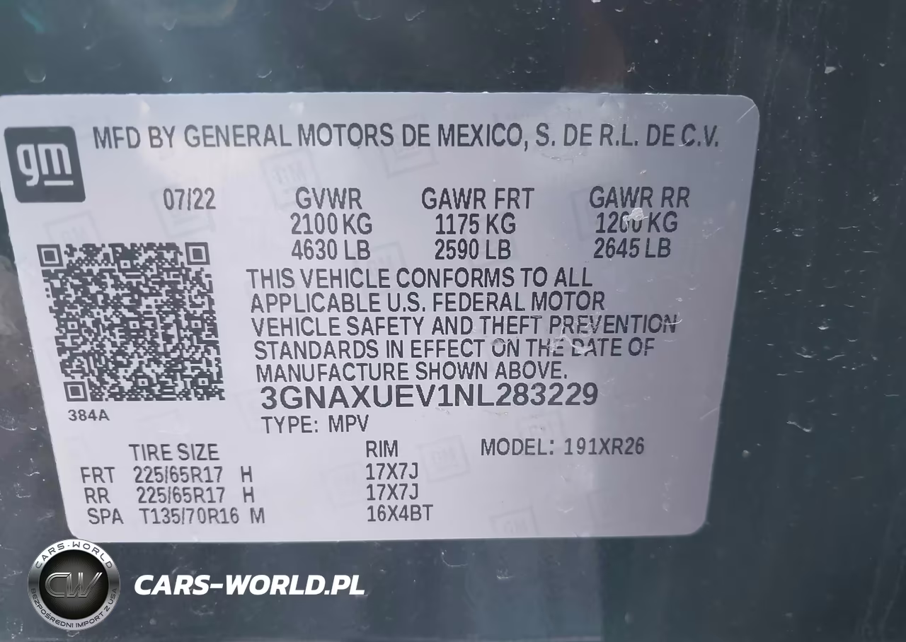 IAAI Nr: I-44488954 VIN: 3GNAXUEV1NL283229 Port: Elizabeth, NJ