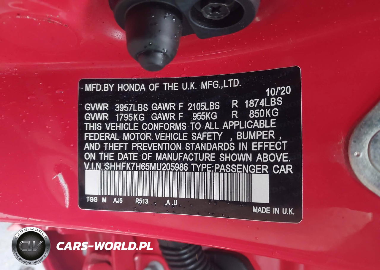 IAAI Nr: I-44489692 VIN: SHHFK7H65MU205986 Port: Savannah, GA
