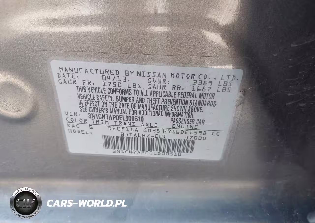 IAAI Nr: I-44489820 VIN: 3N1CN7AP0EL800510 Port: Houston, TX