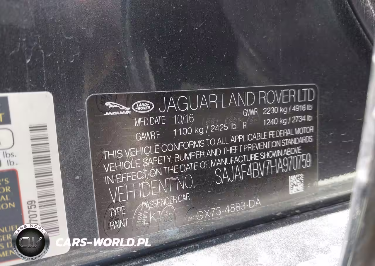 IAAI Nr: I-44490026 VIN: SAJAF4BV7HA970759 Port: Houston, TX
