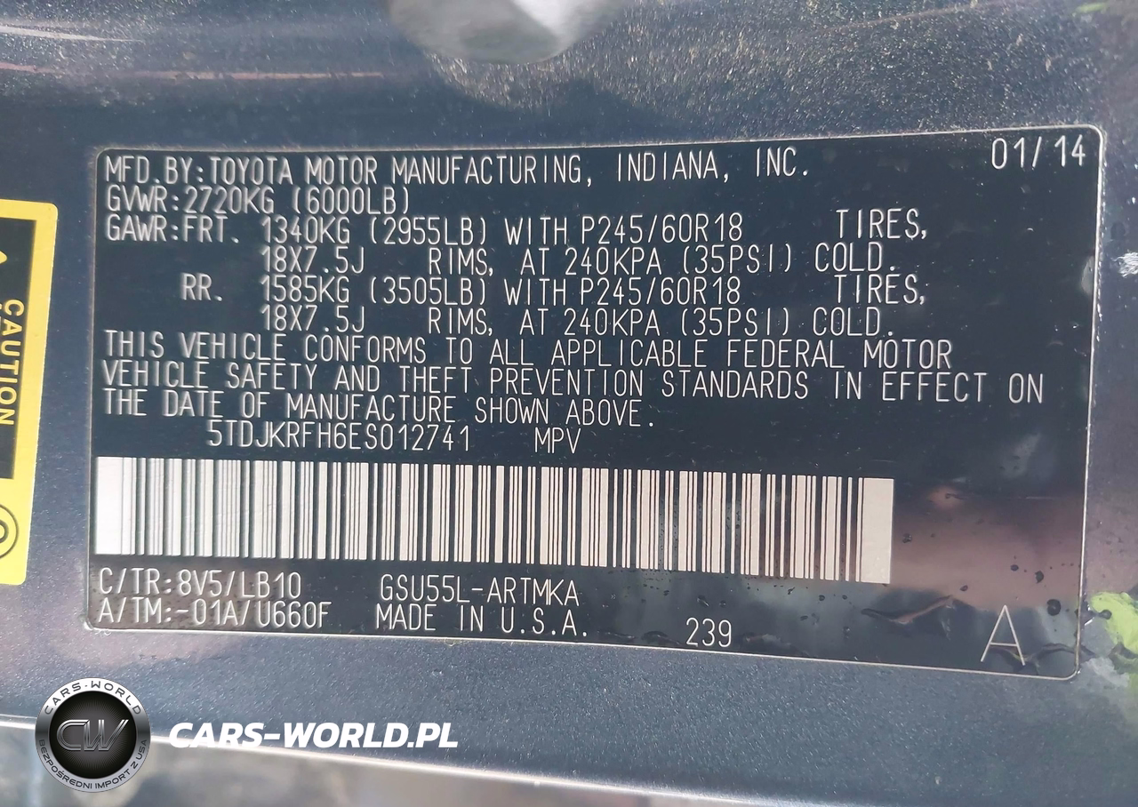 IAAI Nr: I-44490325 VIN: 5TDJKRFH6ES012741 Port: Indianapolis, IN