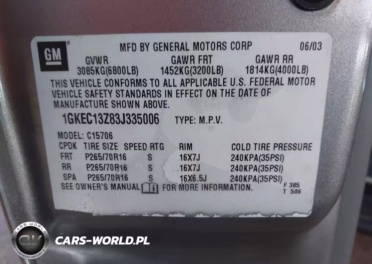 IAAI Nr: I-44490707 VIN: 1GKEC13Z83J335006 Port: Los Angeles, CA
