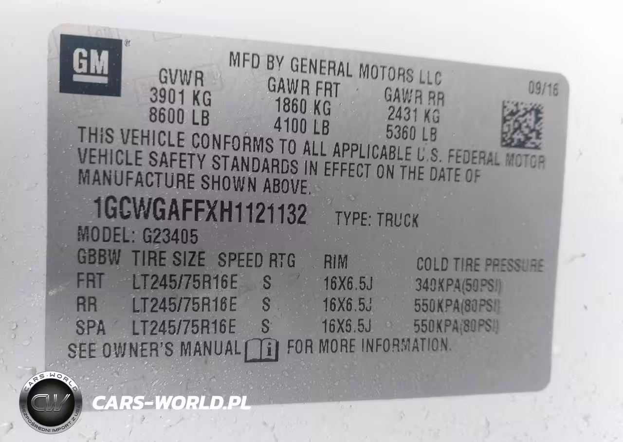 IAAI Nr: I-44492033 VIN: 1GCWGAFFXH1121132 Port: Elizabeth, NJ