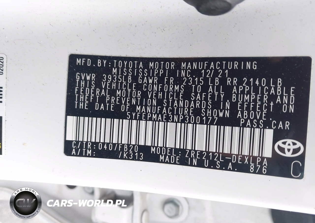 IAAI Nr: I-44492377 VIN: 5YFEPMAE3NP300177 Port: Savannah, GA