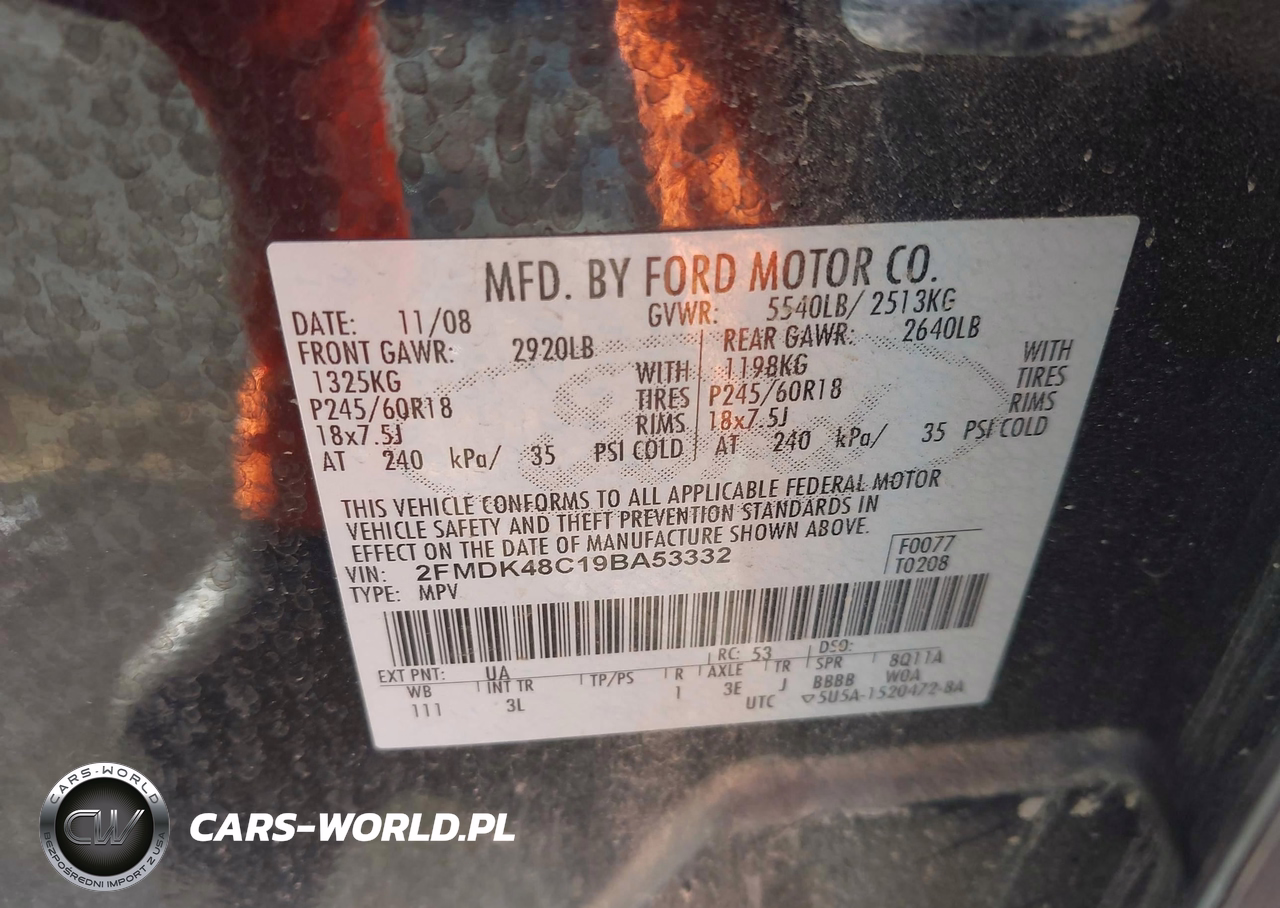 IAAI Nr: I-44492383 VIN: 2FMDK48C19BA53332 Port: Indianapolis, IN