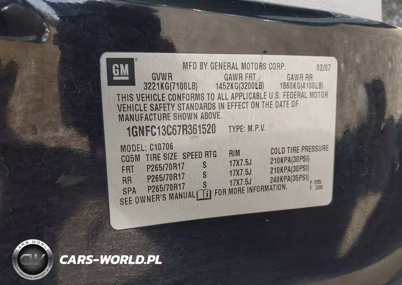 IAAI Nr: I-44492462 VIN: 1GNFC13C67R361520 Port: Houston, TX