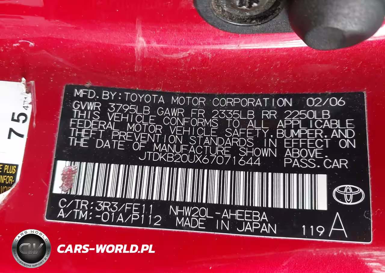 IAAI Nr: I-44492614 VIN: JTDKB20UX67071644 Port: Elizabeth, NJ