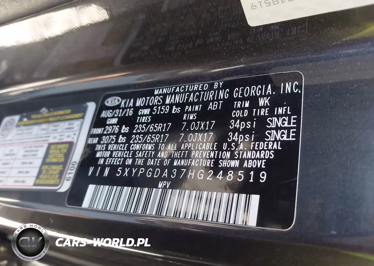 IAAI Nr: I-44493177 VIN: 5XYPGDA37HG248519 Port: Savannah, GA