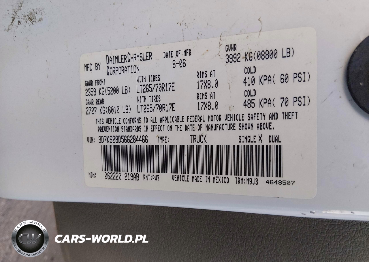 IAAI Nr: I-44493818 VIN: 3D7KS28D56G284466 Port: Los Angeles, CA