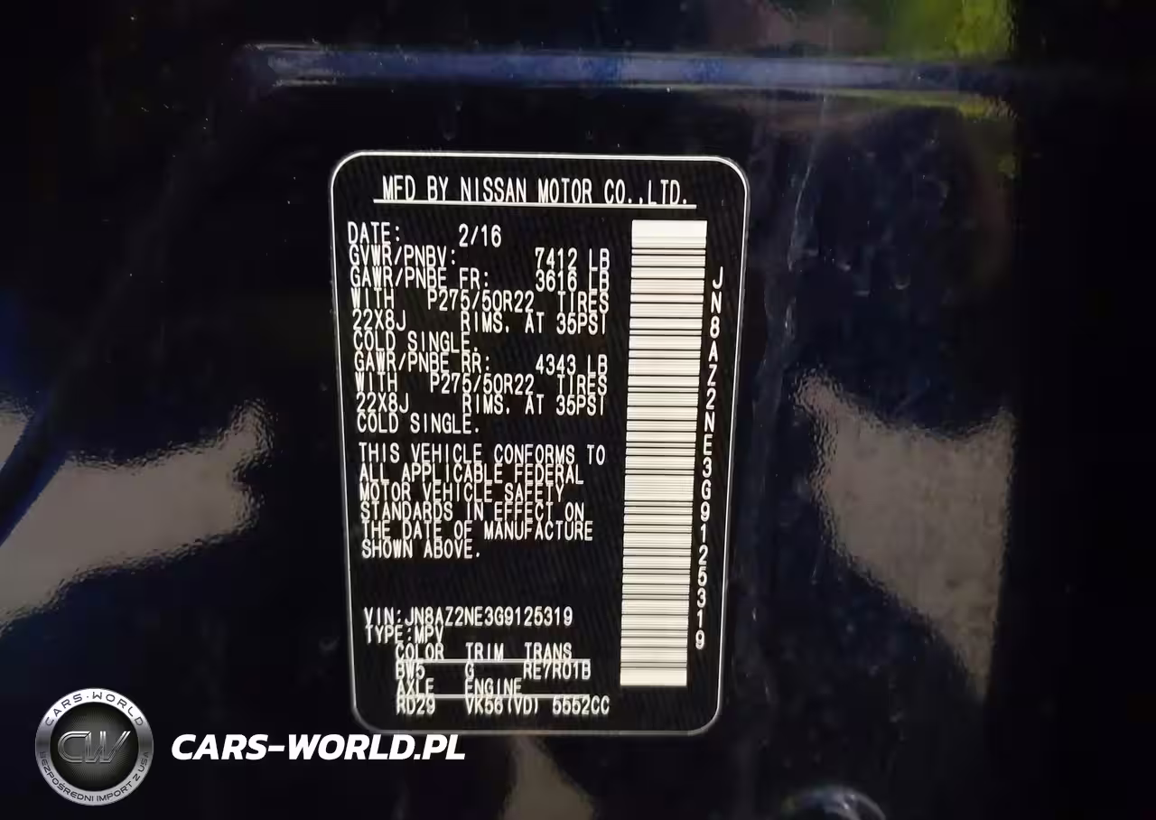 IAAI Nr: I-44493853 VIN: JN8AZ2NE3G9125319 Port: Indianapolis, IN
