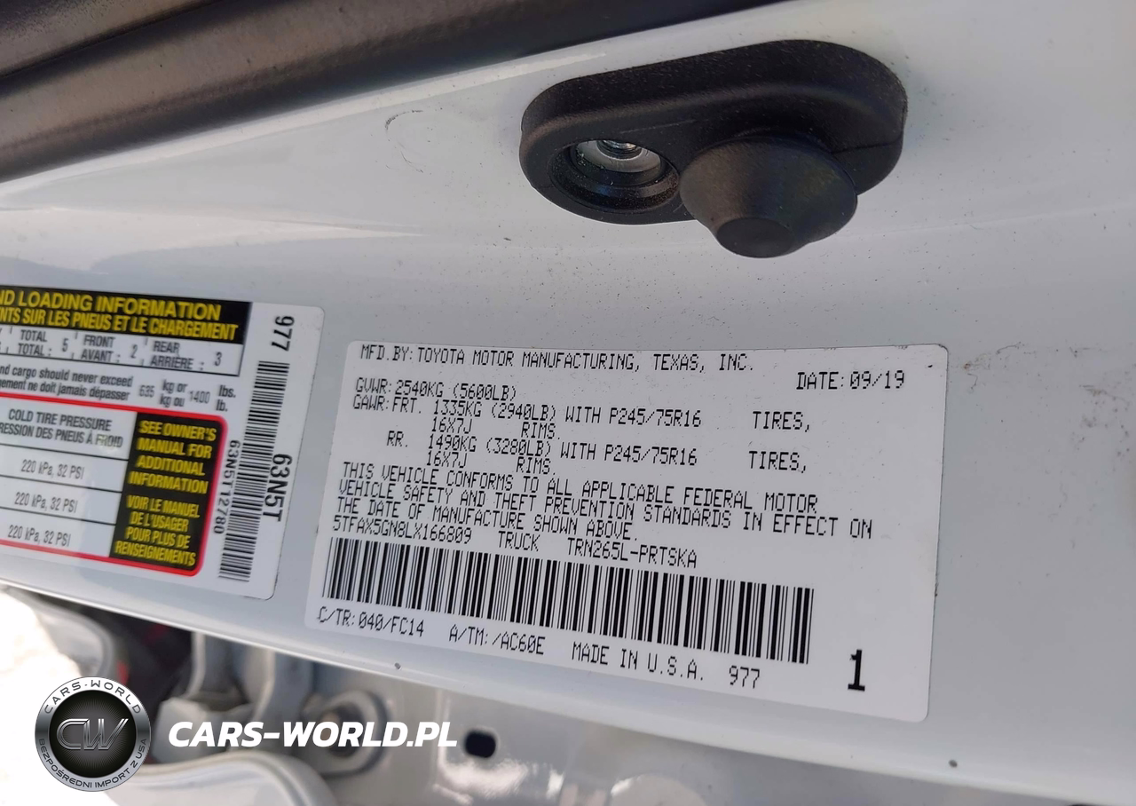 IAAI Nr: I-44495375 VIN: 5TFAX5GN8LX166809 Port: Los Angeles, CA