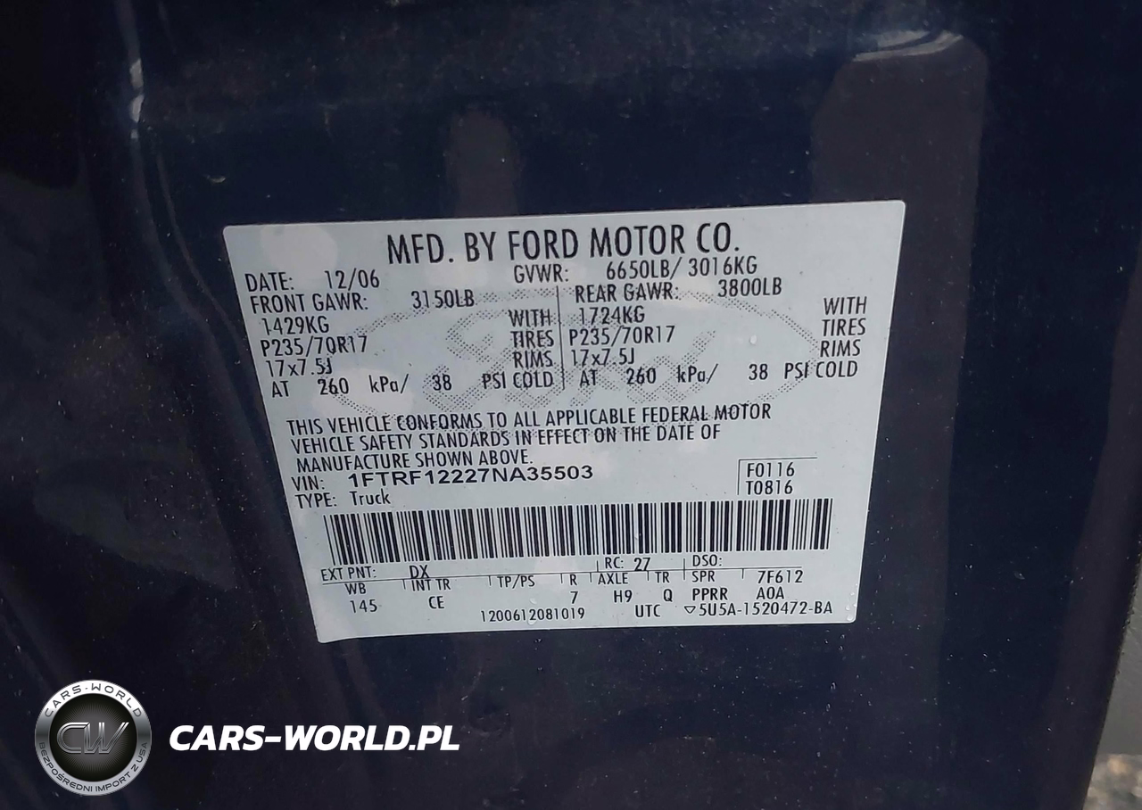 IAAI Nr: I-44495698 VIN: 1FTRF12227NA35503 Port: Elizabeth, NJ