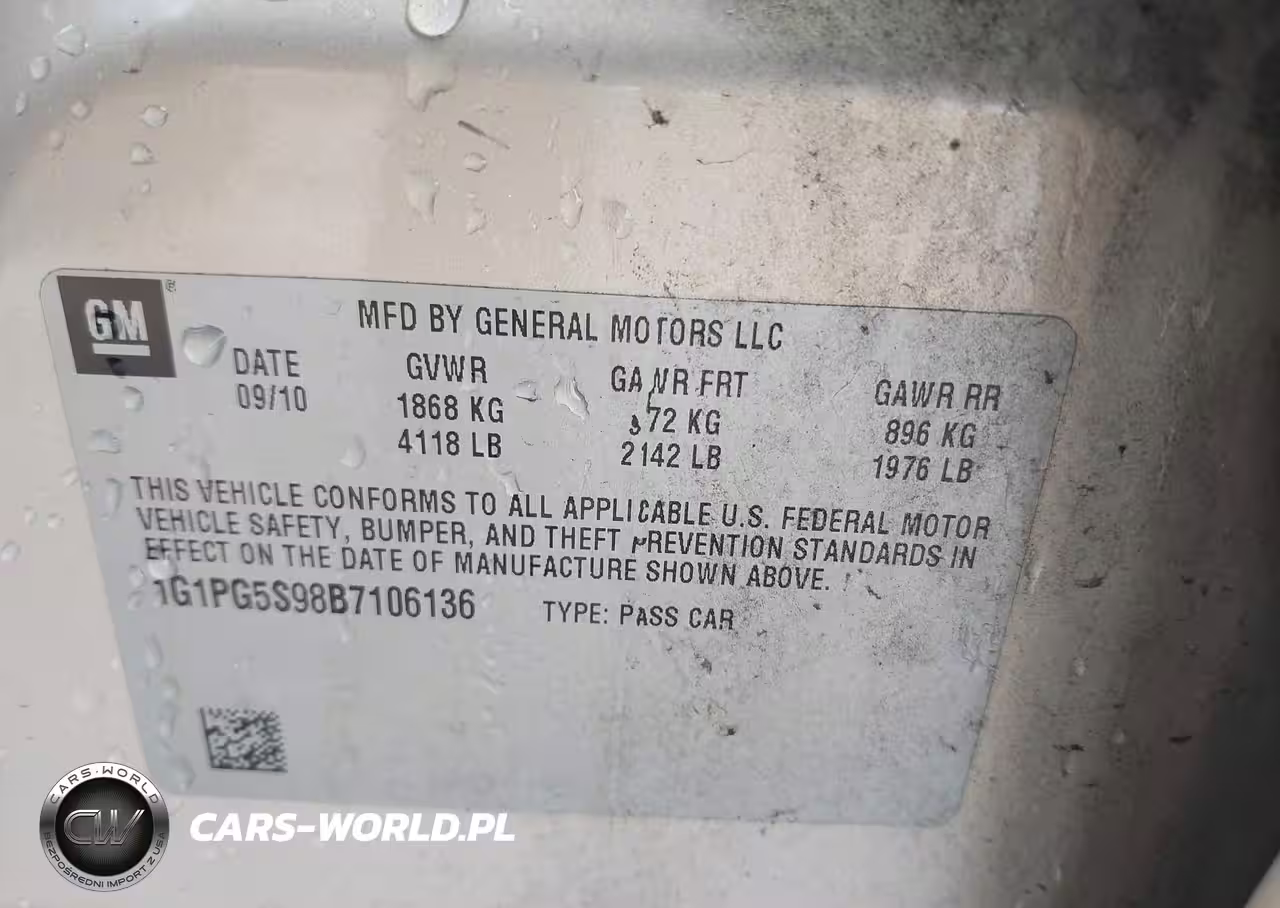 IAAI Nr: I-44495857 VIN: 1G1PG5S98B7106136 Port: Elizabeth, NJ