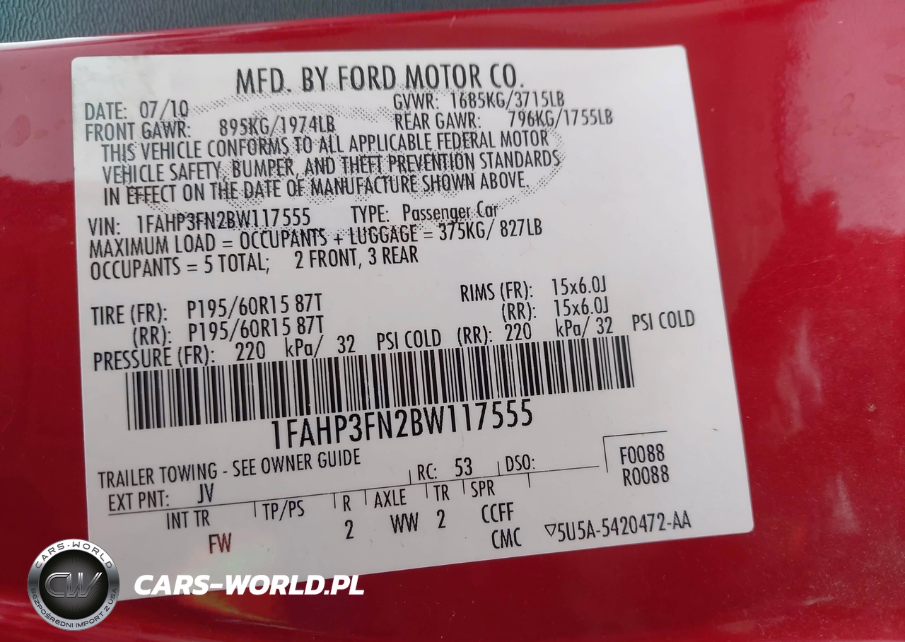 IAAI Nr: I-44495905 VIN: 1FAHP3FN2BW117555 Port: Houston, TX