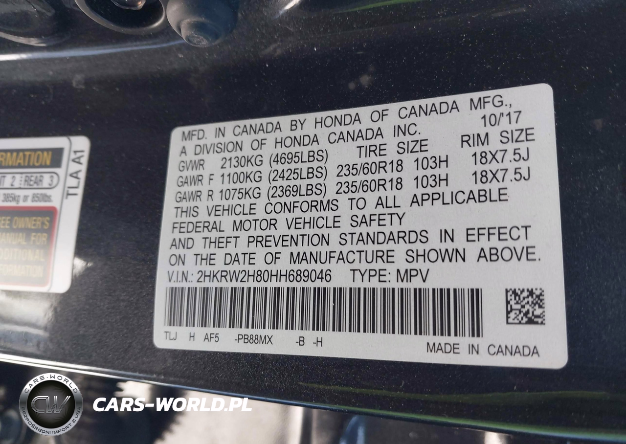 IAAI Nr: I-44496125 VIN: 2HKRW2H80HH689046 Port: Elizabeth, NJ