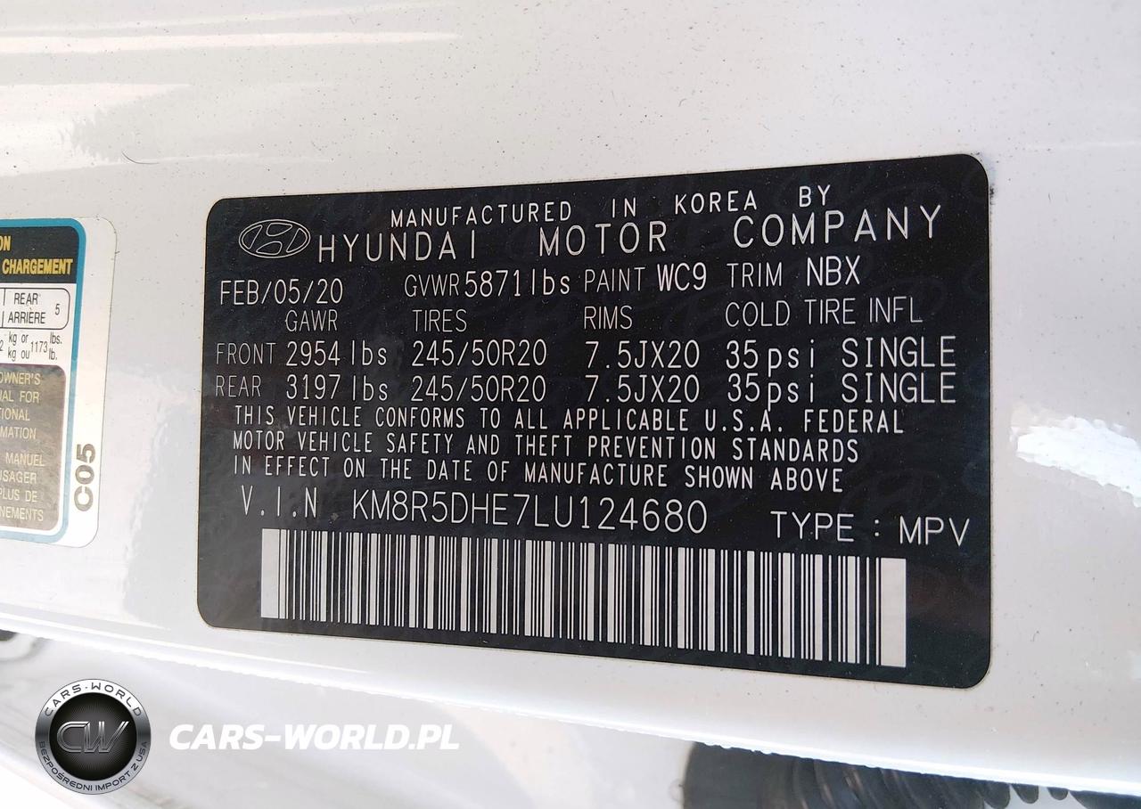 IAAI Nr: I-44496327 VIN: KM8R5DHE7LU124680 Port: Indianapolis, IN
