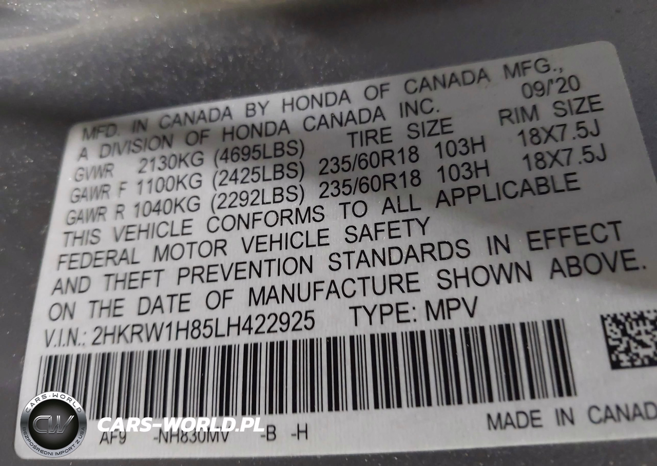 IAAI Nr: I-44497101 VIN: 2HKRW1H85LH422925 Port: Savannah, GA