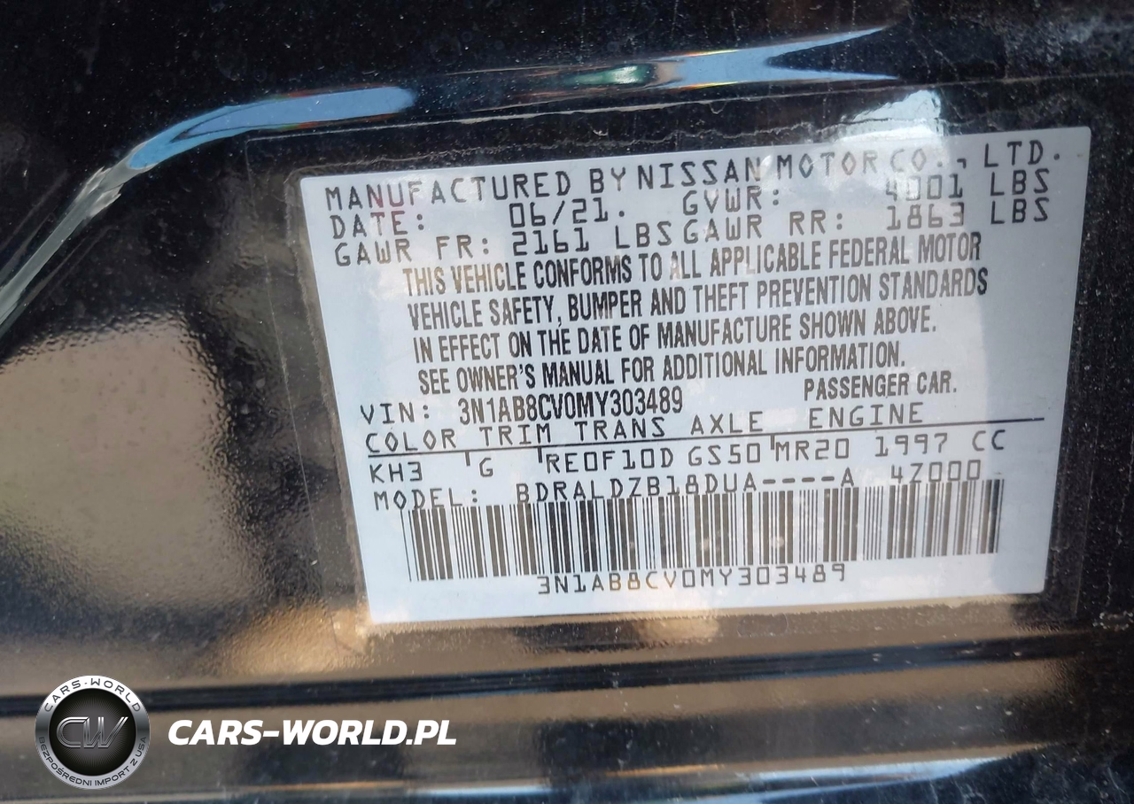 IAAI Nr: I-44497539 VIN: 3N1AB8CV0MY303489 Port: Elizabeth, NJ
