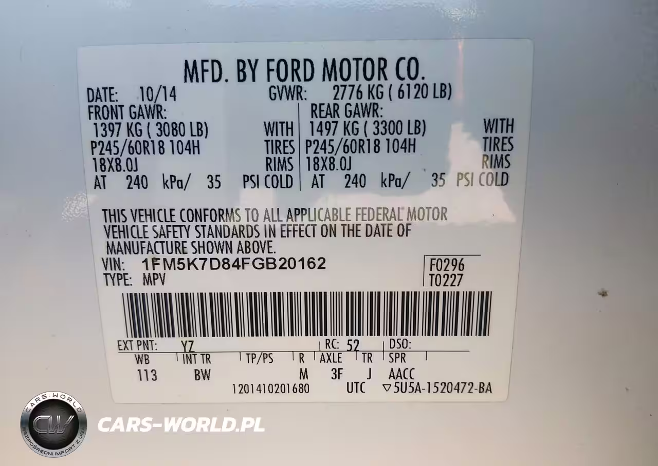 IAAI Nr: I-44498915 VIN: 1FM5K7D84FGB20162 Port: Houston, TX