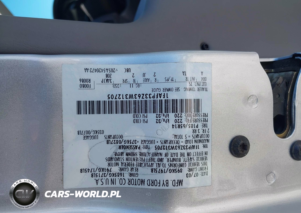IAAI Nr: I-44500151 VIN: 1FAFP33Z63W312705 Port: Elizabeth, NJ