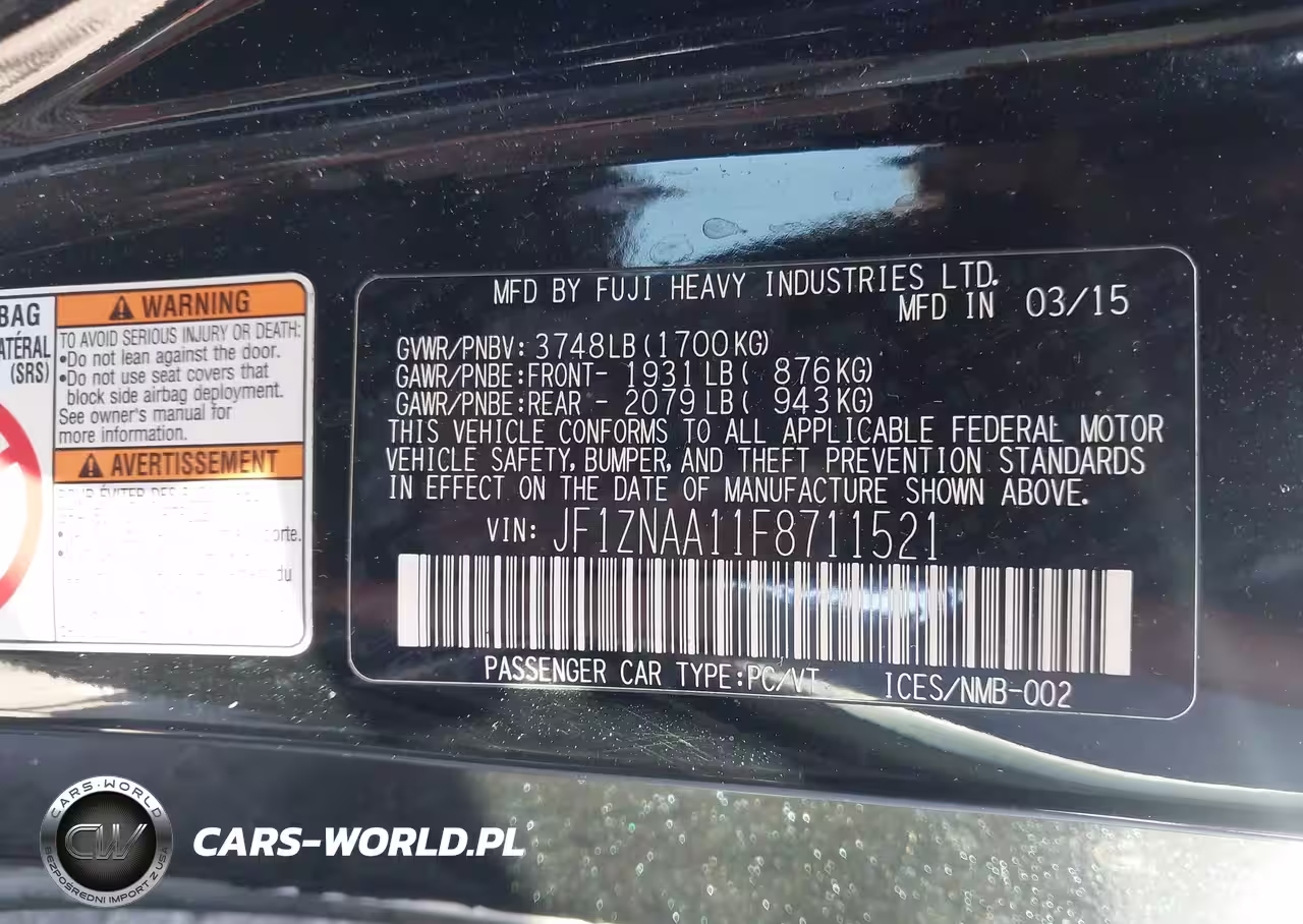 IAAI Nr: I-44500525 VIN: JF1ZNAA11F8711521 Port: Los Angeles, CA