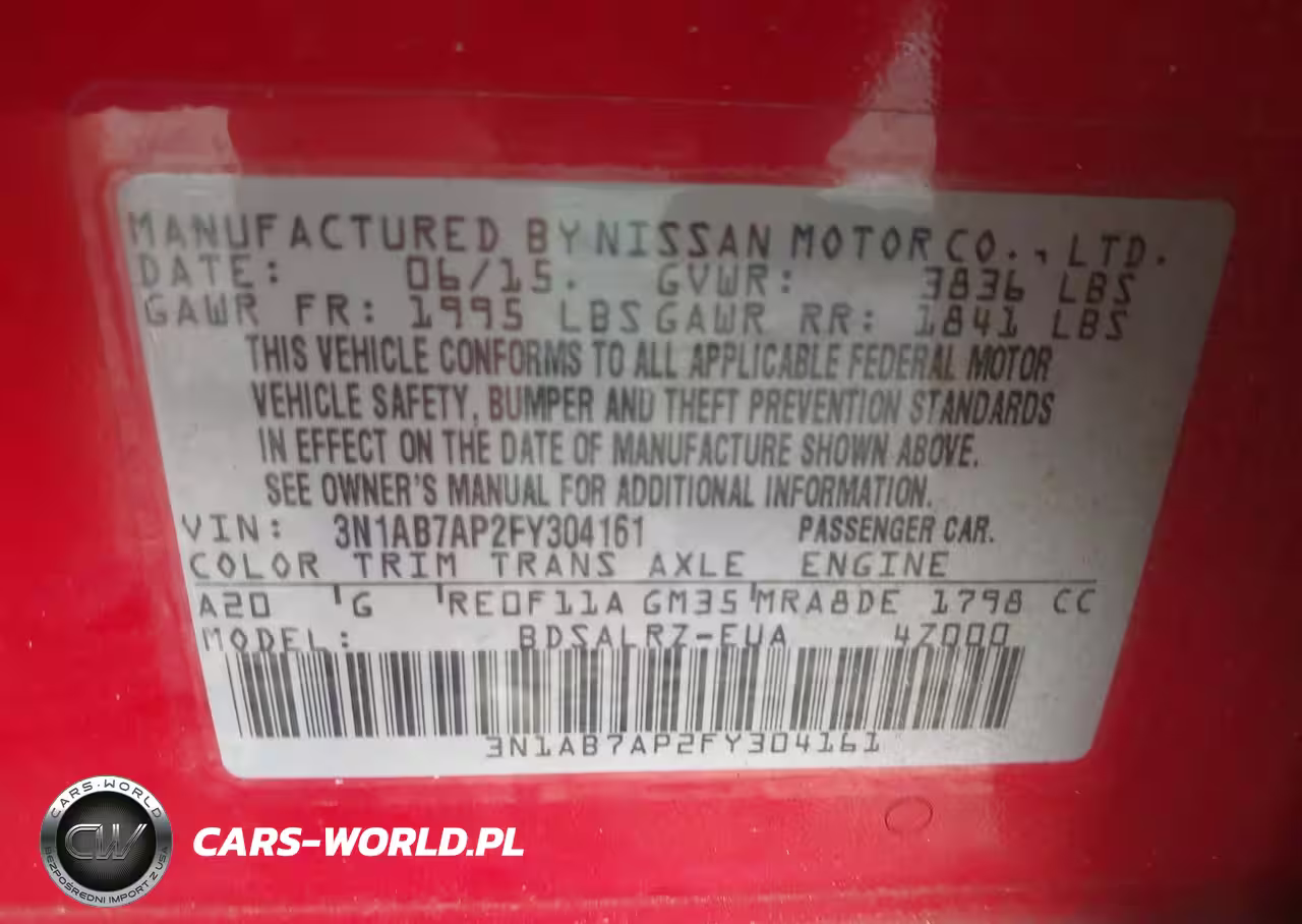 IAAI Nr: I-44501391 VIN: 3N1AB7AP2FY304161 Port: Savannah, GA