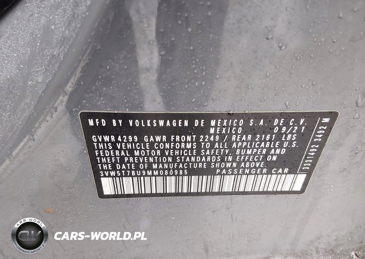IAAI Nr: I-44501882 VIN: 3VW5T7BU9MM080985 Port: Elizabeth, NJ
