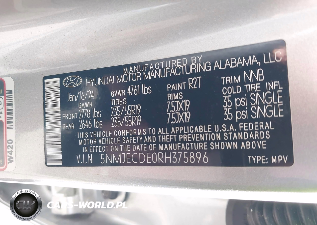 IAAI Nr: I-44501909 VIN: 5NMJECDE0RH375896 Port: Indianapolis, IN