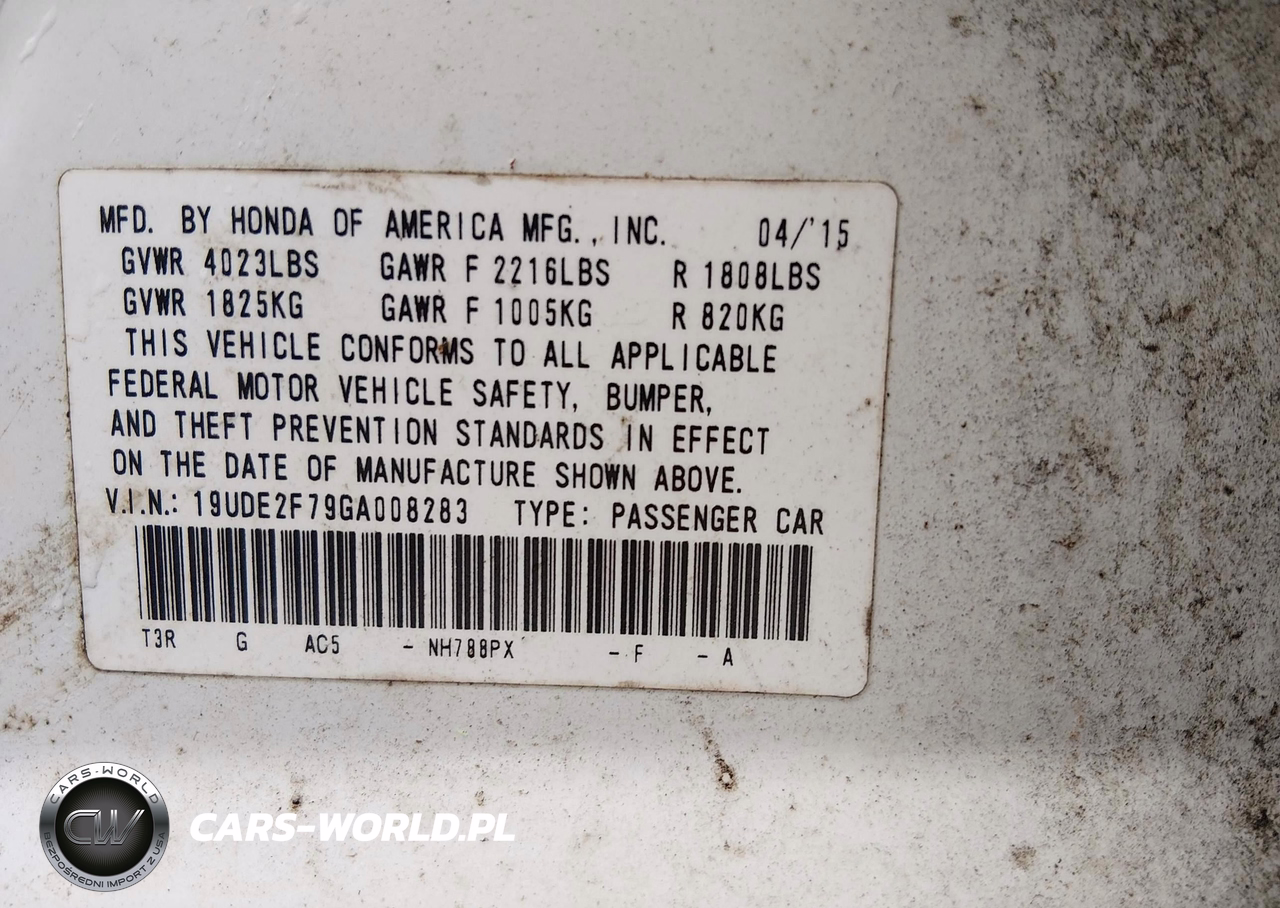 IAAI Nr: I-44501981 VIN: 19UDE2F79GA008283 Port: Savannah, GA
