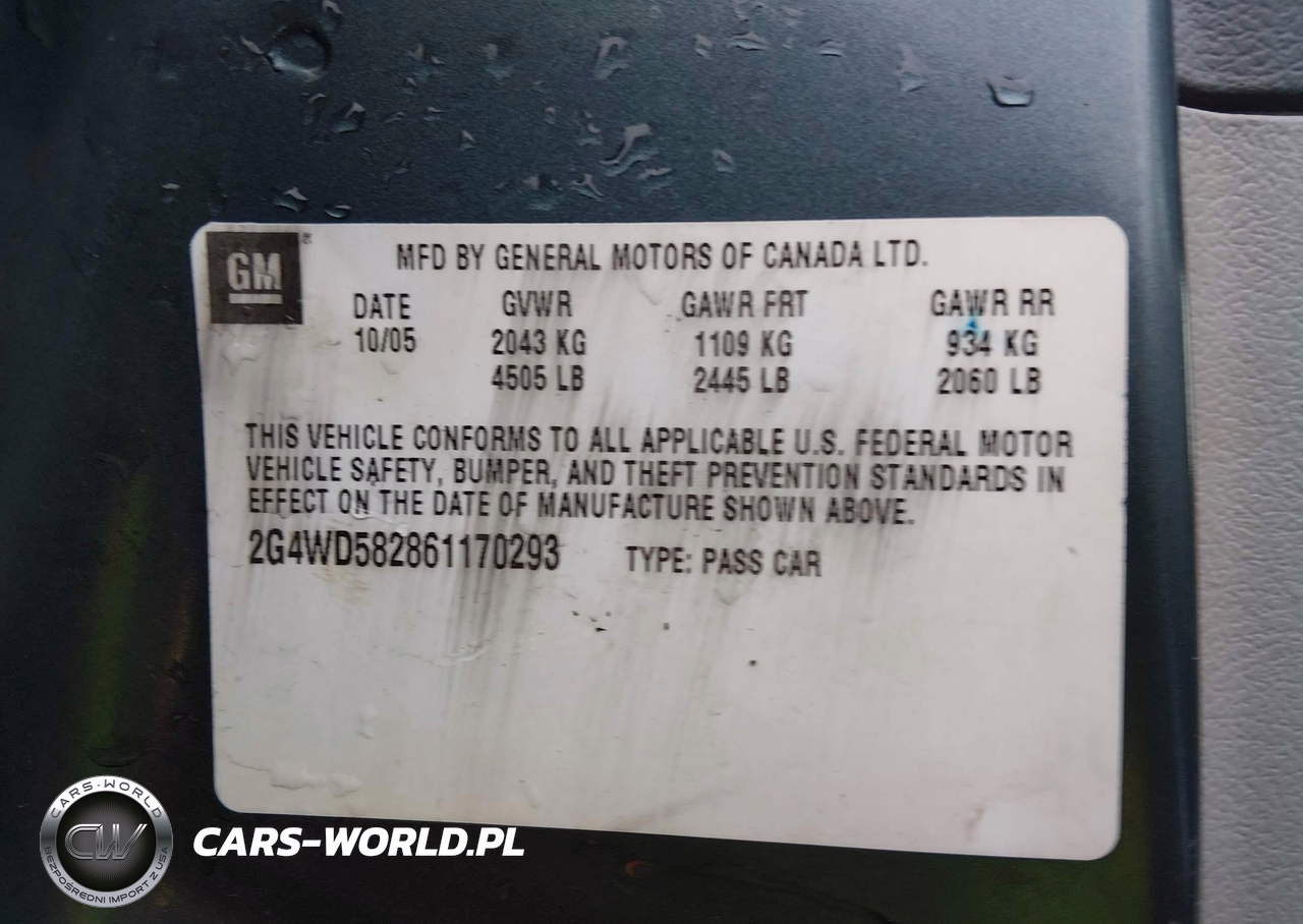 IAAI Nr: I-44502659 VIN: 2G4WD582861170293 Port: Elizabeth, NJ