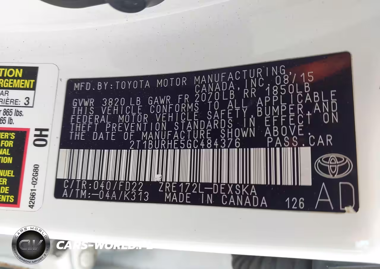IAAI Nr: I-44502762 VIN: 2T1BURHE5GC484376 Port: Savannah, GA
